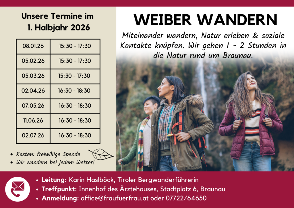 Wir gehen einmal im Monat am Donnerstag für 1,5 – 2 Stunden in die Natur rund um Braunau.