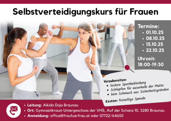 Info: Nach dem Kurs besteht die Möglichkeit, am regulären Training des Aikido-Vereins teilzunehmen – alle Teilnehmerinnen sind dazu herzlich eingeladen.